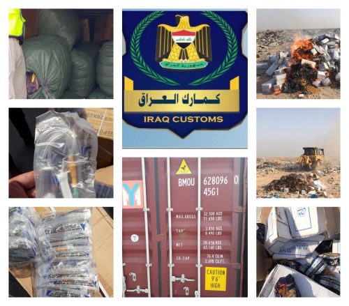 وذكرت الهيئة في بيان، انها”ضبطت حاوية محملة مستلزمات طبية مخبئة خلف مواد أنشائية وملابس مستعملة مخالفة في مركز كمرك بوابة البصرة”.