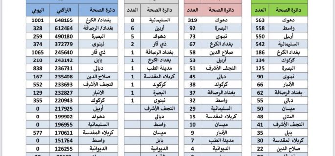 الصحة تسجل 499 اصابة جديدة بفيروس كورونا