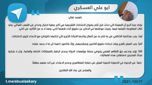 العسكري: الكاظمي تواطئ مع الاعداء لتزوير الانتخابات … يجب محاكمته