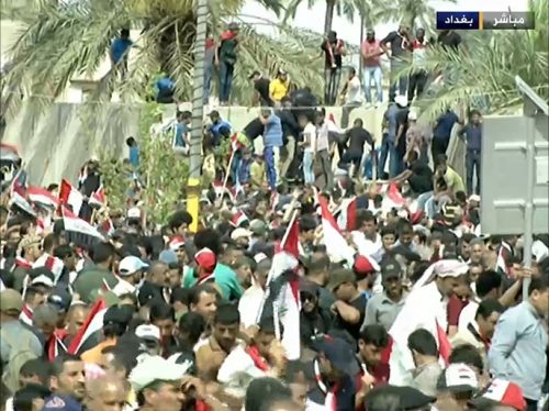 وقال مصدر، إن “المتظاهرين امام بوابة المنطقة الخضراء اعلنوا اليوم، اعتصاما مفتوحا”.