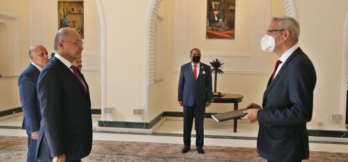 وذكر بيان رئاسي، تلقت *الرأي* الدولية نسخة منه، أن “رئيس الجمهورية برهم صالح تسلم، اليوم في قصر السلام ببغداد، أوراق اعتماد سفراء كلٍّ من جمهورية المانيا الاتحادية مارتن ياغر، وجمهورية التشيك بيتر شتيبانيك”.