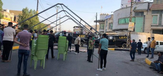 نصب الخيم امام مكتب مفوضية الانتخابات في البصرة
