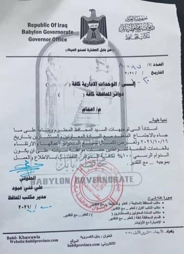 بالوثيقة : قرار بإعادة الدوام 100% بجميع الدوائر الحكومية في بابل