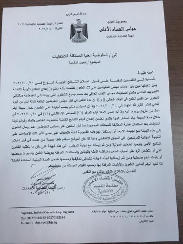 بالوثيقة.. القضاء يرفض النظر بطعون الانتخابات المقدمة بعد 14 تشرين