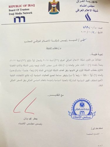 توجيه شبكة الاعلام العراقي بتوفير مساحة لجميع الفعاليات السياسية ازاء نتائج الانتخابات