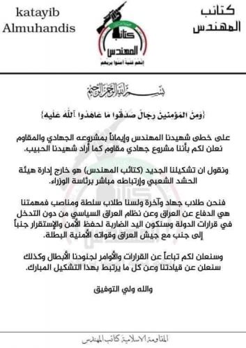 بالوثيقة.. اعلان كتائب المهندس للمقاومة في العراق