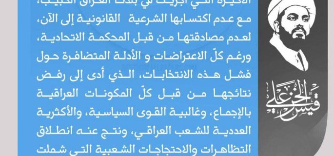 الخزعلي: نتائج الانتخابات لم تكتسب الشرعية ومجلس الامن استعجل المباركة