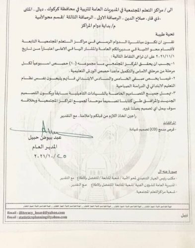 بالوثيقة.. التربية تحدد موعد بدء دوام مراكز محو الأمية