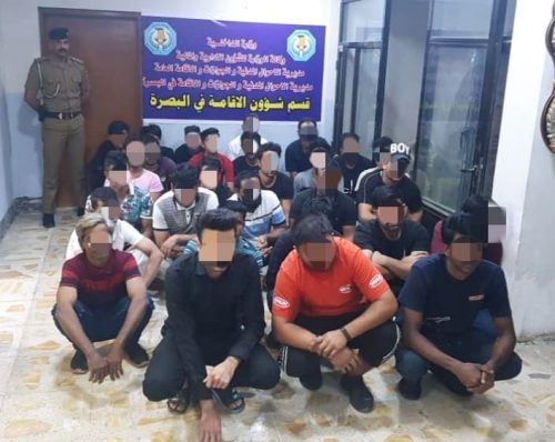 وذكرت الوزارة في بيان، ان”ملاكات مديرية الأحوال المدنية والجوازات والإقامة في محافظة البصرة القت القبض على (٢٩) شخصا أجنبيا من مختلف الجنسيات لمخالفتهم قانون إقامة الأجانب العراقي رقم ٧٦ لسنة ٢٠١٧”.