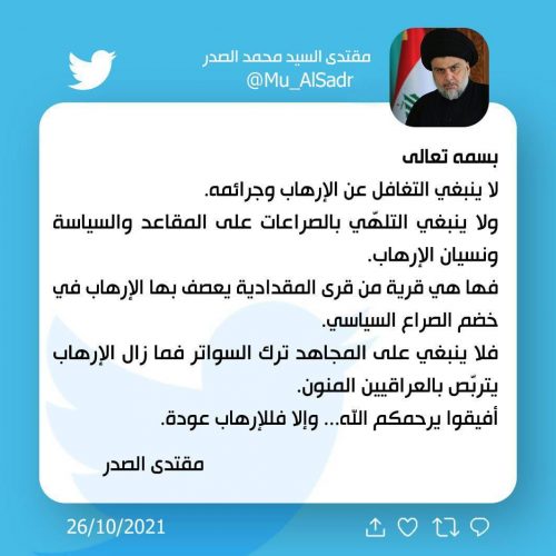 مقتدى الصدر يعلق على هجوم المقدادية: لا ينبغي ترك السواتر