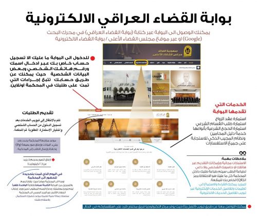 وأضاف البيان: “يمكنك الوصول الى البوابة عبر كتابة (بوابة القضاء العراقي) في محرك البحث (Google) او عبر موقع مجلس القضاء الأعلى/ بوابة القضاء الالكترونية.