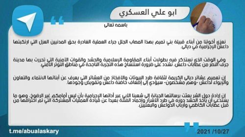 ابو علي العسكري: نشدد على ضرورة استنساخ التجربة الناجحة في جرف النصر بمناطق التوتر الامني