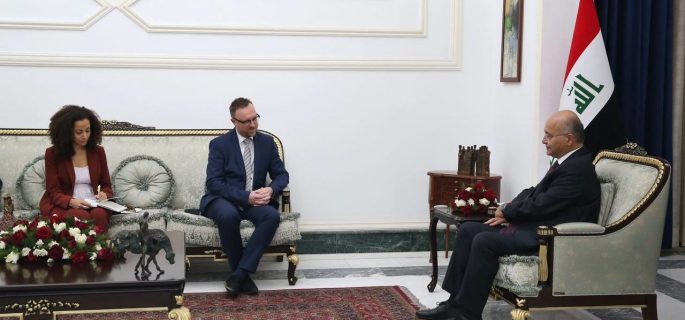 وذكر المكتب الاعلامي لرئيس الجمهورية في بيان ان “الرئيس صالح، استقبل، رئيس فريق التحقيق التابع للأمم المتحدة لتعزيز المساءلة عن الجرائم التي ارتكبها عصابات داعش الارهابية (يونيتاد) كريستيان ريتشر”.