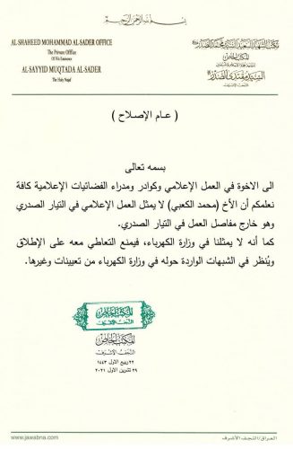 بالوثيقة.. الصدر يتبرأ من الكعبي
