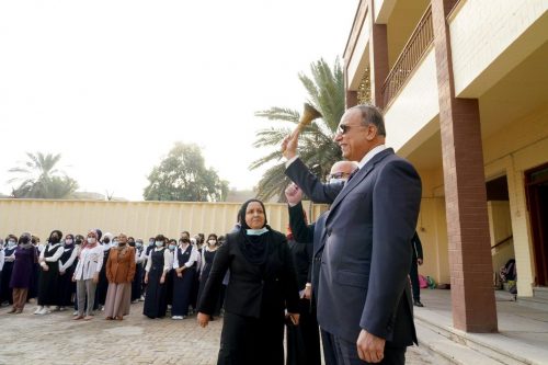 زار رئيس مجلس الوزراء مصطفى الكاظمي، ثانوية العقيدة وقرع جرس بدء العام الدراسي الجديد.