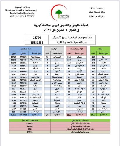 الصحة تسجل 1135 إصابة جديدة بكورونا