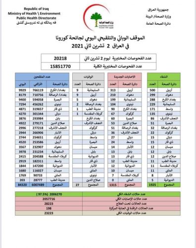 الصحة تسجل 1153 اصابة جديدة بكورونا