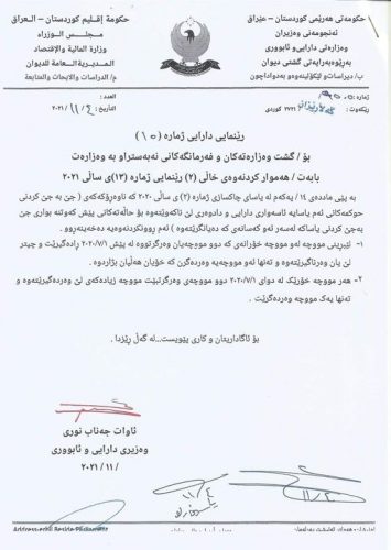 بالوثيقة : حكومة الإقليم تخيّر مواطنيها الذين يتسلمون راتبين بالإبقاء على واحد وقطع الآخر