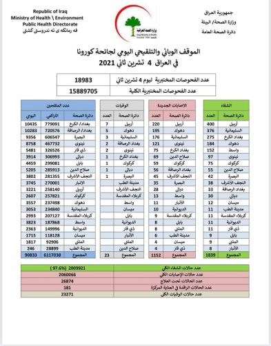 الصحة تسجل 1152 إصابة جديدة بكورونا