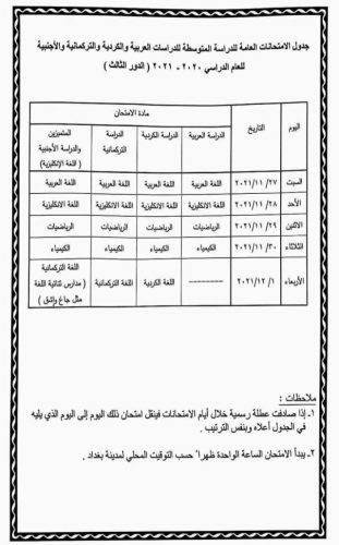 جدول امتحانات الدور الثالث للثالث متوسط