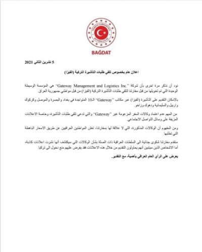 بالوثيقة ..السفارة التركية تصدر تنبيها هاما بشأن منح الفيزا للعراقيين