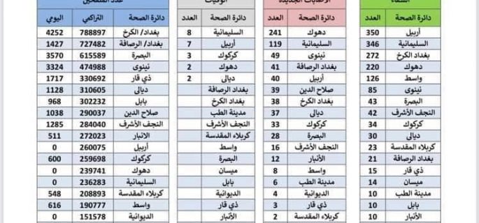 الصحة تسجل 717 اصابة جديدة كورونا