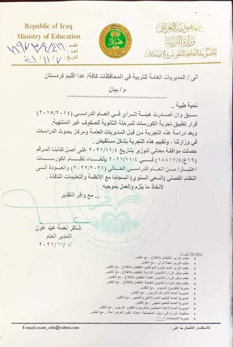 بالوثيقة : التربية تقرر الغاء العمل بنظام الكورسات والعودة للنظام الفصلي لهذه المراحل