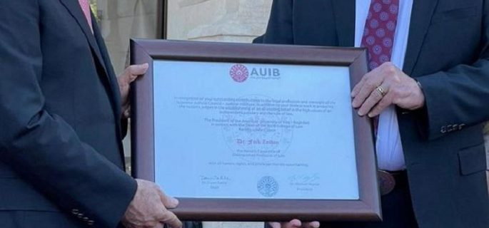 الجامعة الأمريكية تمنح رئيس مجلس القضاء الأعلى شهادة قانونية دولية