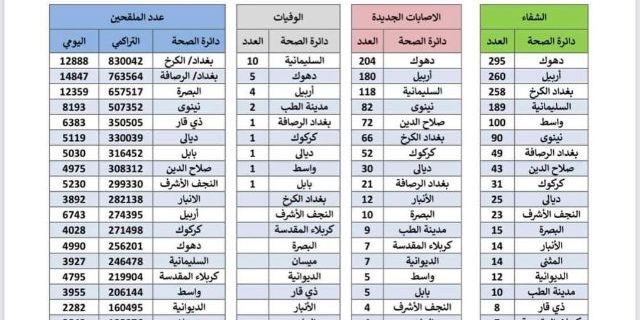 الصحة تسجل 892 اصابة جديدة بالفيروس كورونا