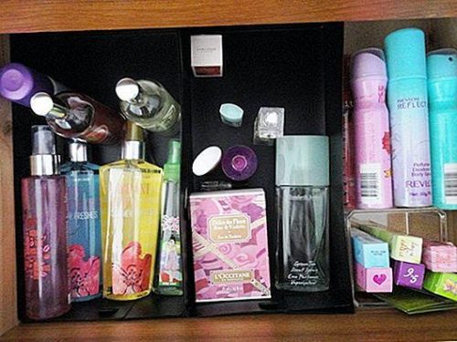 3. زجاجات عطرك : يحب البعض منا عرض العطور على خزانة الملابس أو في الرف المفتوح، وخاصة تلك التي تأتي في عبوات زجاجية متقنة الصنع. إذا كان لا بد من ذلك، فاستخدمي الزجاجات المصقولة أو غير الشفافة لأنها ستمنع السائل من تلقي الكثير من الضوء.