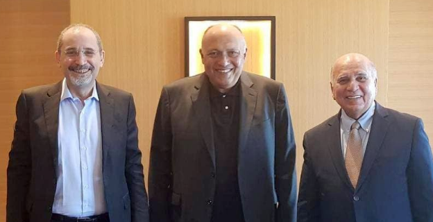 بحث وزراء خارجية العراق والاردن ومصر، مستجدات الموقف التنفيذي للمشروعات المشتركة بين البلدان الثلاثة، وتطوُّرات الأوضاع في المنطقة.