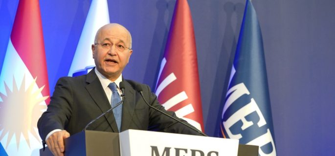 وقال رئيس الجمهورية في كلمة له خلال منتدى السلام والأمن في الشرق الأوسط ، إن “الشرق الأوسط في مرحلة انتقالية ومرحلة حاسمة “، مشيرا الى ان “العراق نقطة تلاقي العربي والكردي والشيعة والسنة وباقي الطوائف”.