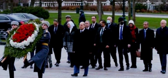 وضع رئيس مجلس الشيوخ المصري عبد الوهاب عبد الرازق صباح ،الخميس، إكليلا من الزهور على قبر الجندي المجهول قرب الكرملين في العاصمة الروسية موسكو.