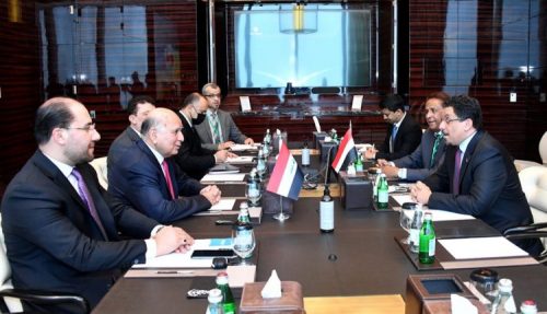 واعرب وزير الخارجية بحسب البيان، عن “اهتمام العراق بمُجرَيات الأحداث في اليمن، مُؤكّداً ضرورة إنهاء الصراع الدائر منذ عدّة سنوات بين أبناء البلد الواحد”.
