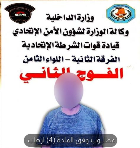 واضافت، انه”وفي السياق ذاته تمكنت قوة من اللواء الثامن الفرقة الثانية شرطة اتحادية بالاشتراك مع مفارز استخبارات اللواء التابعة لوكالة الاستخبارات والتحقيقات الاتحادية من إلقاء القبض على احد المطلوبين وفق المادة 4 /إرهاب في منطقة (الكاظمية المقدسة) ببغداد”.