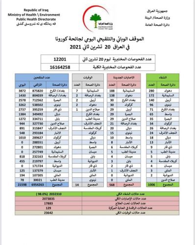 الصحة تسجل 568 إصابة جديدة بفيروس كورونا