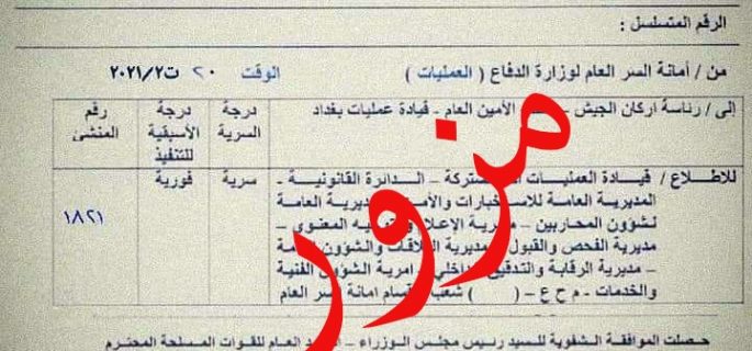 وذكر بيان للوزارة تلقت *الرأي* الدولية نسخة منه، انه تناقلت بعض صفحات مواقع التواصل الاجتماعي خلال الساعات الماضية كتاباً مزوراً بخصوص “موافقة السيد القائد العام للقوات المسلحة على عودة نظام البديل للإجازات”، وتوكد وزارة الدفاع أن هذا الكتاب غير صحيح ومزور.