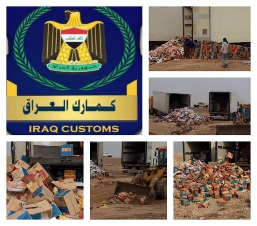 اتلاف شاحنتين بمنفذ مندلي واجراءات صارمة لايقاف دخول المواد التي تهدد صحة المواطن