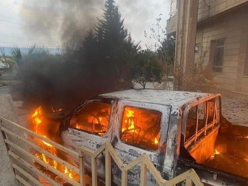 هذا واقدم عدد من المتظاهرين في السليمانية، اليوم الأربعاء، على حرق مبنى مقر حركة التغيير.
