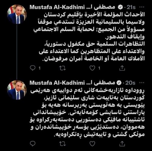 رئيس الوزراء: الأحداث المؤلمة الأخيرة بالسليمانية تستدعي موقفاً مسؤولاً من الجميع