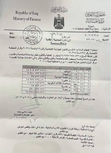 بالوثيقة : وزارة المالية تصرف مبلغ العلاوات والترقيات للداخلية