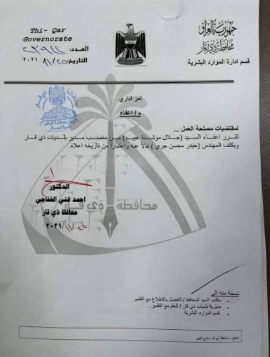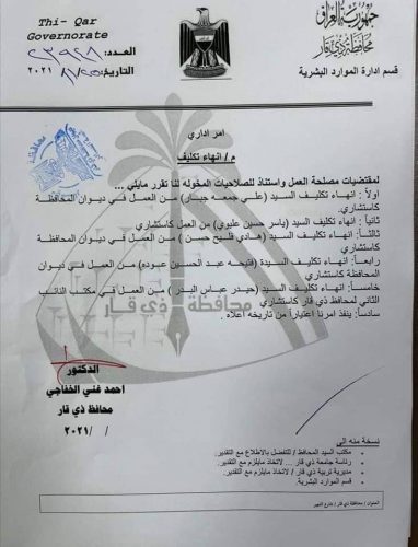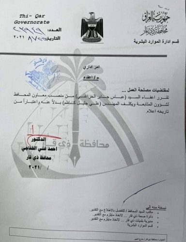 بالوثائق.. اعفاءات بالجملة تطال مسؤولين في محافظة ذي قار