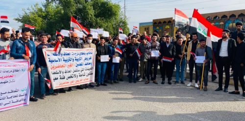 تظاهر العشرات من خريجي الجامعات في ميسان، الأحد، للمطالبة بشمولهم بقرار 315 أسوة بإقرانهم من المحاضرين.