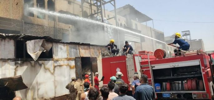 اخماد حريق اندلع بمحلات تجارية في سوق جميلة