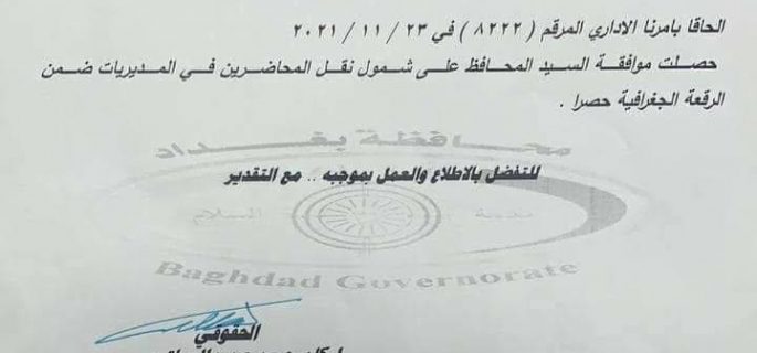 بالوثيقة.. محافظ بغداد يزف بشرى جديدة للمحاضرين بمديريات التربية