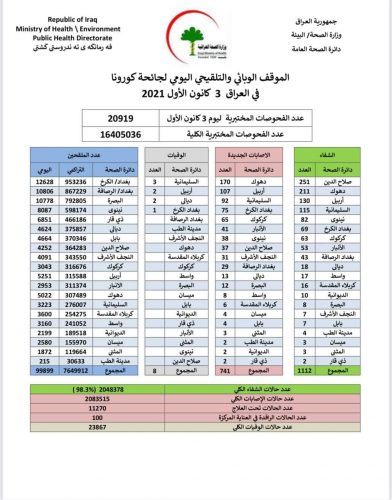 الصحة تسجل 741 اصابة جديدة بكورونا
