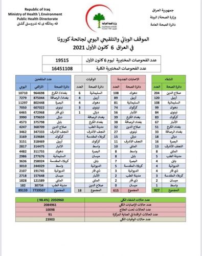 الصحة تسجل 615 إصابة جديدة بفيروس كورونا