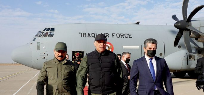 وذكر مكتب الكاظمي في بيان تلقت*الرأي* الدولية نسخة منه، ان”الاخير وصل إلى قضاء مخمور على رأس وفد أمني يضم وزير الدفاع، ورئيس أركان الجيش، ونائب قائد العمليات المشتركة، ورئيس جهاز مكافحة الإرهاب، ووكيل وزارة الداخلية لشؤون الاستخبارات، وعدداً من القيادات الأمنية”.