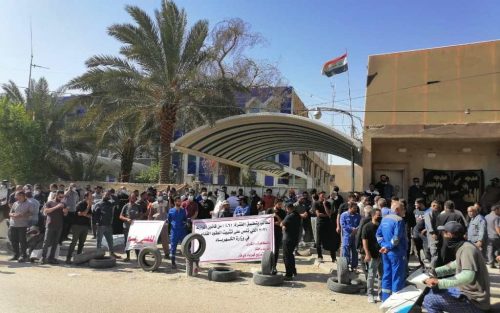 جدد العشرات من موظفي عقود دائرة توزيع كهرباء محافظة ذي قار، اليوم الاثنين، إغلاق مبنى الدائرة للمطالبة بإعادة السلم القديم في احتساب الرواتب وصرف مستحقاتهم المالية لثلاثة أشهر من العام الماضي.