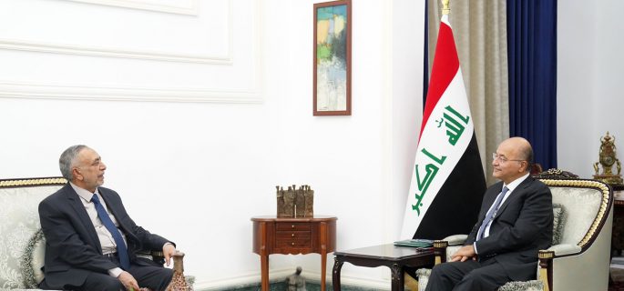 بحث رئيس الجمهورية برهم صالح، اليوم الاثنين، مع رئيس مجلس النواب الأسبق السيد محمود المشهداني، آخر المستجدات الاوضاع في العراق.